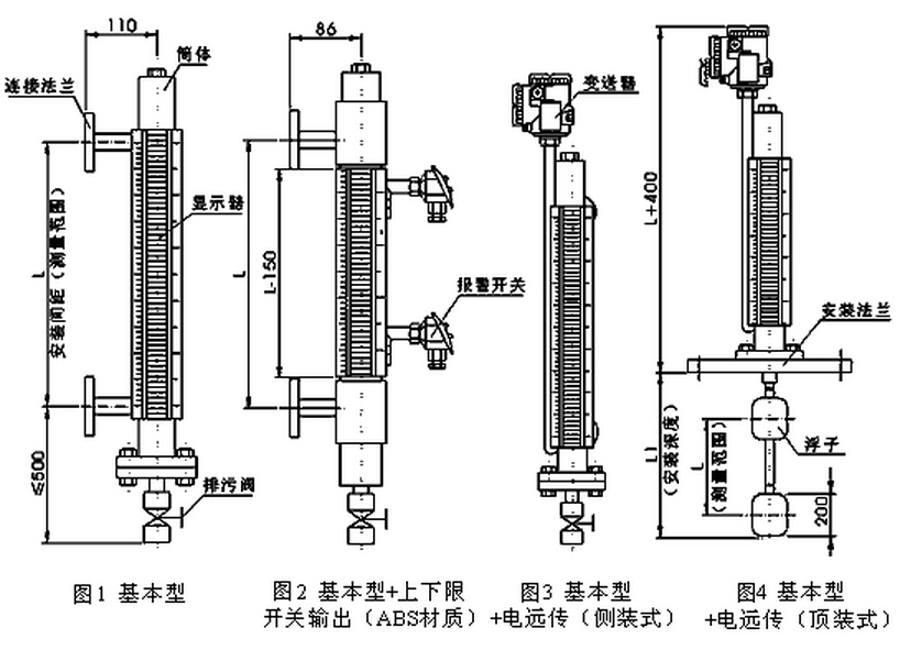 2、 液位计有一定盲区,故在读取液位高度时应加上盲区值补偿(本厂液位计出厂时,标尺刻度零位已迁移 到实际值)。